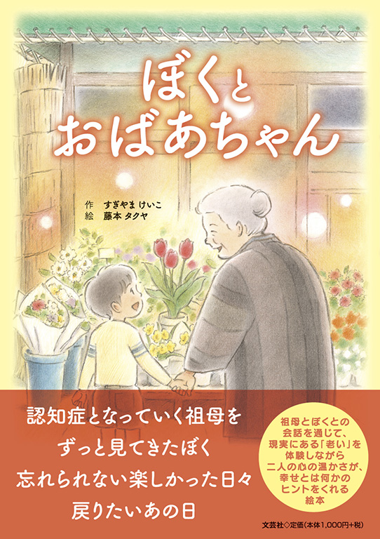 「子供たちは祖母との心の交流を経験しますが、認知症となったことを理解するまでには困惑や葛藤が生じます。こうした経験は孫にはショッキングな出来事に違いありませんが、人生において初めてリアルに“老い”を考えるきっかけともなるはずです(「あとがき」より)」。祖母とぼくとの会話を通じて、「老い」を体験しながら、二人の心の温かさが、幸せとは何かのヒントをくれる絵本。