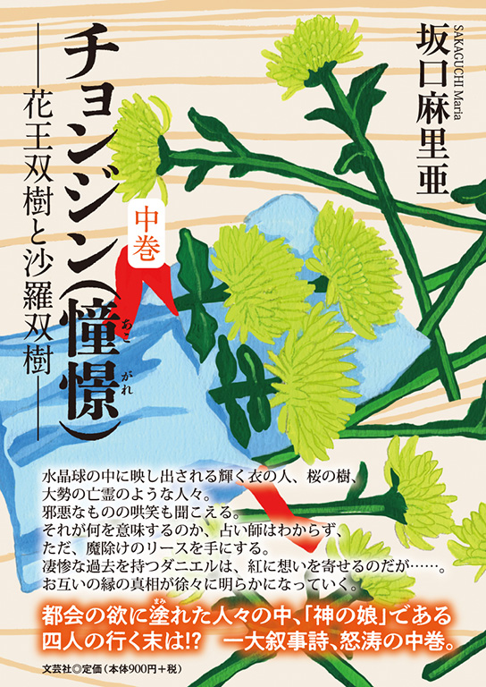 水晶球の中に映し出される輝く衣の人、桜の樹、大勢の亡霊のような人々。邪悪なものの哄笑も聞こえる。それが何を意味するのか、占い師はわからず、ただ、魔除けのリースを手にする。凄惨な過去を持つダニエルは、紅に想いを寄せるのだが……。お互いの縁の真相が徐々に明らかになっていく。都会の欲に塗れた人々の中、「神の娘」である四人の行く末は!? 一大叙事詩、怒涛の中巻。
