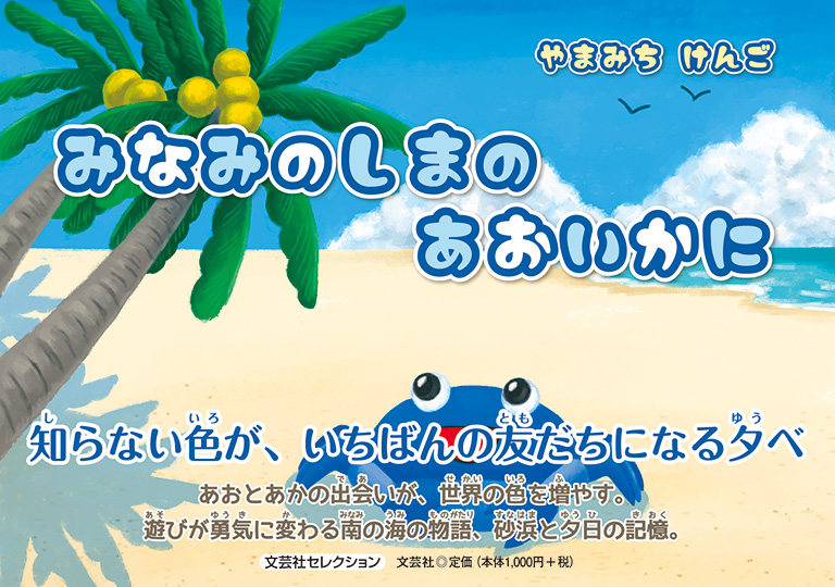 南の海の小さな島で、青いかにがひとりでくらしていた。ある日、隣の島から赤いかにがやってくる。はじめて見る赤い色におどろいた青いかにも、すぐに心を通わせ、綱引きやすもう、砂遊びなど、日々のあそびが広がっていく。やがて赤いかにの島で、さまざまないろの生きものたちと出会い、青いかには世界のひろさと、美しさを知る。ふたりの友情が、世界の色をやさしく照らす物語の絵本。