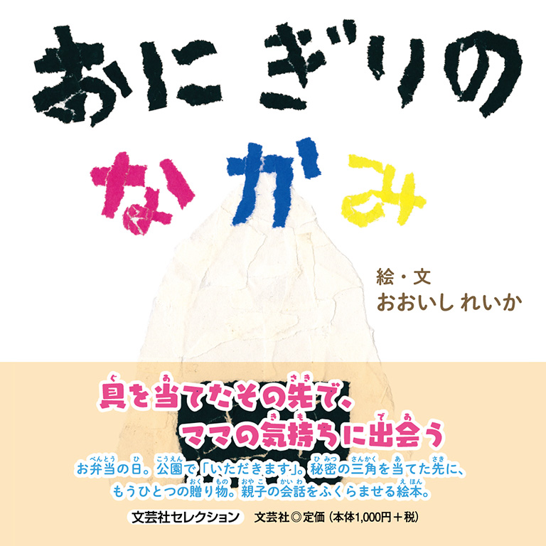 保育園のおべんとうの日、いちばん楽しみにしているのはおにぎり。なぜなら、なかみに何が入っているかは食べるまでひみつだから。公園でたくさん遊んだあと、みんなで「いただきます」をしてかぶりつく。出てきたのは大好きなさけ。さらに帰り道、母からもうひとつのなかみを知らされる。おべんとうの時間のうれしさとぬくもりが、やさしく胸に残る絵本。
