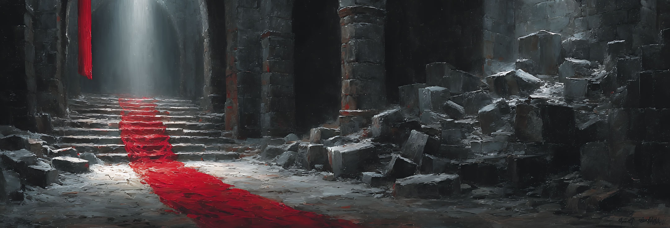 エブドメロスの旅の終わりの風景。それはすべてが石化した世界でした。見方によっては、カタストロフィ、破壊と破滅の終末風景といえます。しかしエブドメロスは、まるで初めて希望にめぐりあったかのように、未知の世界への再生を穏やかに見つめています。さあ一体どこからこのような物語が生まれてくるのでしょうか? ファンタジー、メタフィジック──既成の概念から根こそぎ脱した思想、思考、空想──これぞ、シュルレアリスムだからこそ現前せしむる「スイッチ」です。